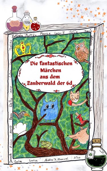 Nachdem wir so viel über Märchen gelernt hatten, wollten wir dies auch selbst ausprobieren und eigene Märchenerzählungen schreiben, welche die gelernten Merkmale beinhalteten. Mit vielen Ideen und Fantasie schrieben wir unsere ersten Entwürfe. Diese besprachen wir gemeinsam in der Klasse, um uns gegenseitig zu beraten und die Texte zu überarbeiten. Am Ende kamen viele großartige und fantastische Märchen heraus, die wir in unserem Märchenbuch sammeln konnten. Damit unser Buch auch zu den Texten passende Bilder erhielt, erstellte jeder von uns ein selbstgemaltes Bild, welches wir an die jeweilige Stelle im Buch einfügten. Ein Märchenbuch, ohne ein ansprechendes Titelbild und einen geeigneten Klappentext, wäre kein Märchenbuch, weswegen auch Schüler*innen aus der Klasse Titelbilder entwarfen und Klappentexte schrieben. Wir entschieden uns jeweils im Klassenrat für die Entwürfe von Elvira T. (Coverbild 6c), von Lisa J. (Klappentext/-bild 6c) sowie für Jaromir D. (Coverbild 6d) und Luisa V., Matilda G. & Letizia S. (Klappentext 6d). Als wir alle Bestandteile unseres Buches zusammen hatten, wurde dieses in die Druckerei gegeben. Wir freuen uns schon sehr auf die Ergebnisse des Drucks. Vielleicht könnt ihr auch so etwas einmal ausprobieren. Ich sage euch, es lohnt sich!