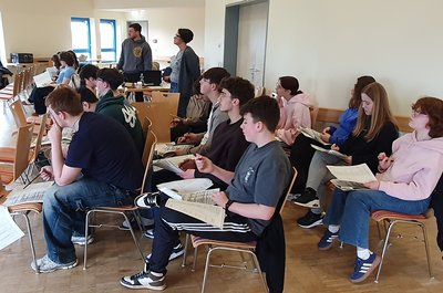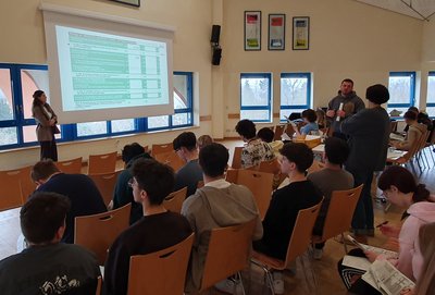 Am Montag wurden insgesamt vier Workshops, an denen alle Schülerinnen und Schüler teilnahmen, angeboten. Wie versichere ich mich als Erwachsener (Allianz), wie mache ich meine Einkommenssteuererklärung (Finanzamt Kusel-Landstuhl), welche Konten benötige ich und wie spare ich Geld effektiv (Deutscher Sparkassen- und Giroverband)? Das waren Fragen, die beantwortet werden konnten. Darüber hinaus stellte sich die Firma SBN Wälzlager aus Schönenberg-Kübelberg vor. Wo will ich einmal arbeiten - in einem Großbetrieb oder eher etwas familiärer? Die beiden Referenten Herr Kreuscher und Herr Pascal Lothschütz stellten ihre unterschiedlichen beruflichen Lebenswege vor und schnell wurde klar: Es geht nicht immer geradeaus, manchmal biegt man ab, orientiert sich neu - startet nochmals in eine andere Richtung durch. Und das ist völlig in Ordnung und bereichert die eigene Biographie enorm.