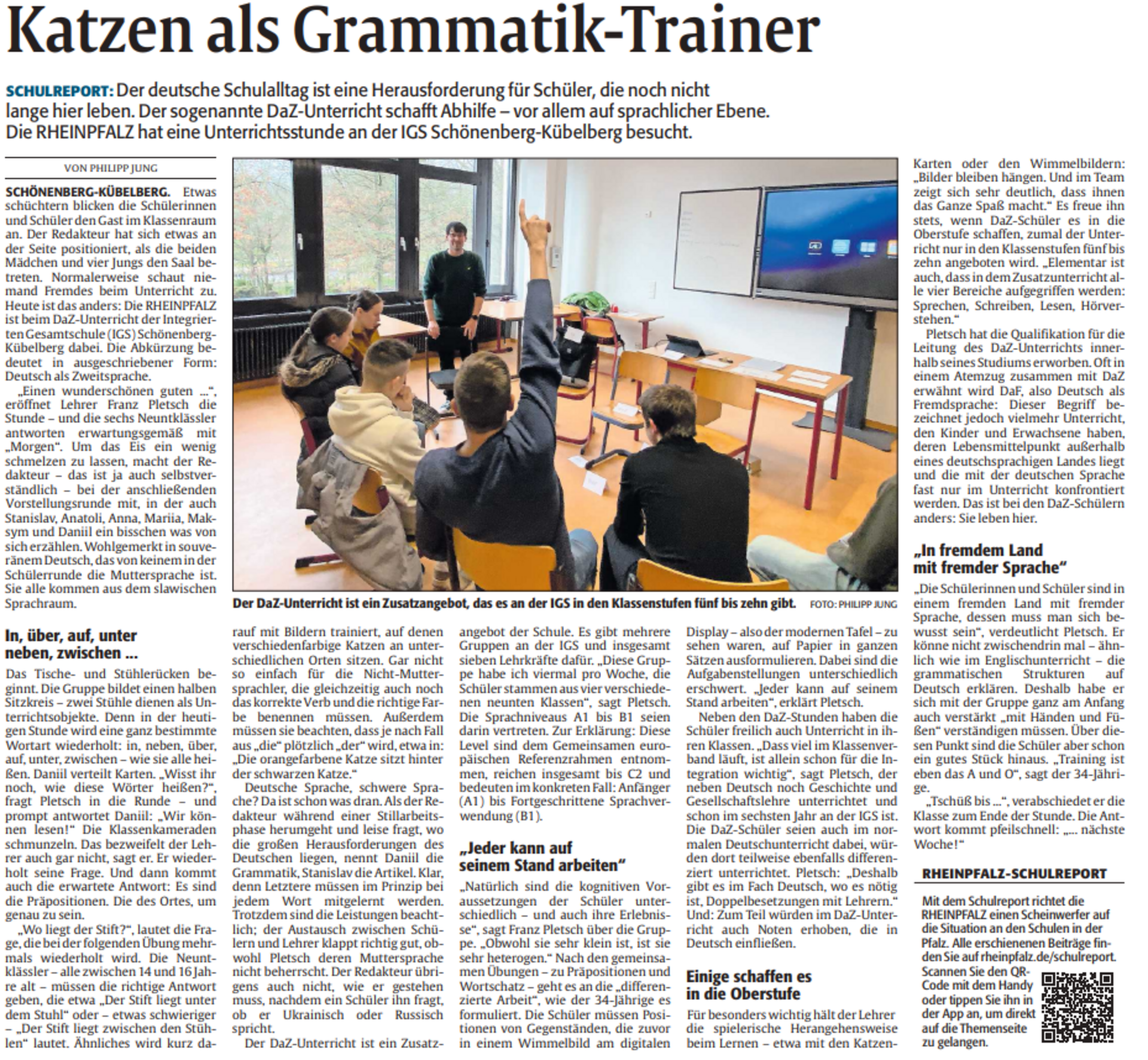 DAZ ist ein besonderes Fach an der IGS. Philipp Jung von der Rheinpfalz verbrachte am 27.11.25 eine DAZ-Stunde zusammen mit Schülerinnen und Schülern mit Migrationshintergrund und ihrem Lehrer Franz Pletsch, einem waschechten Pfälzer.