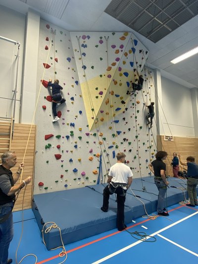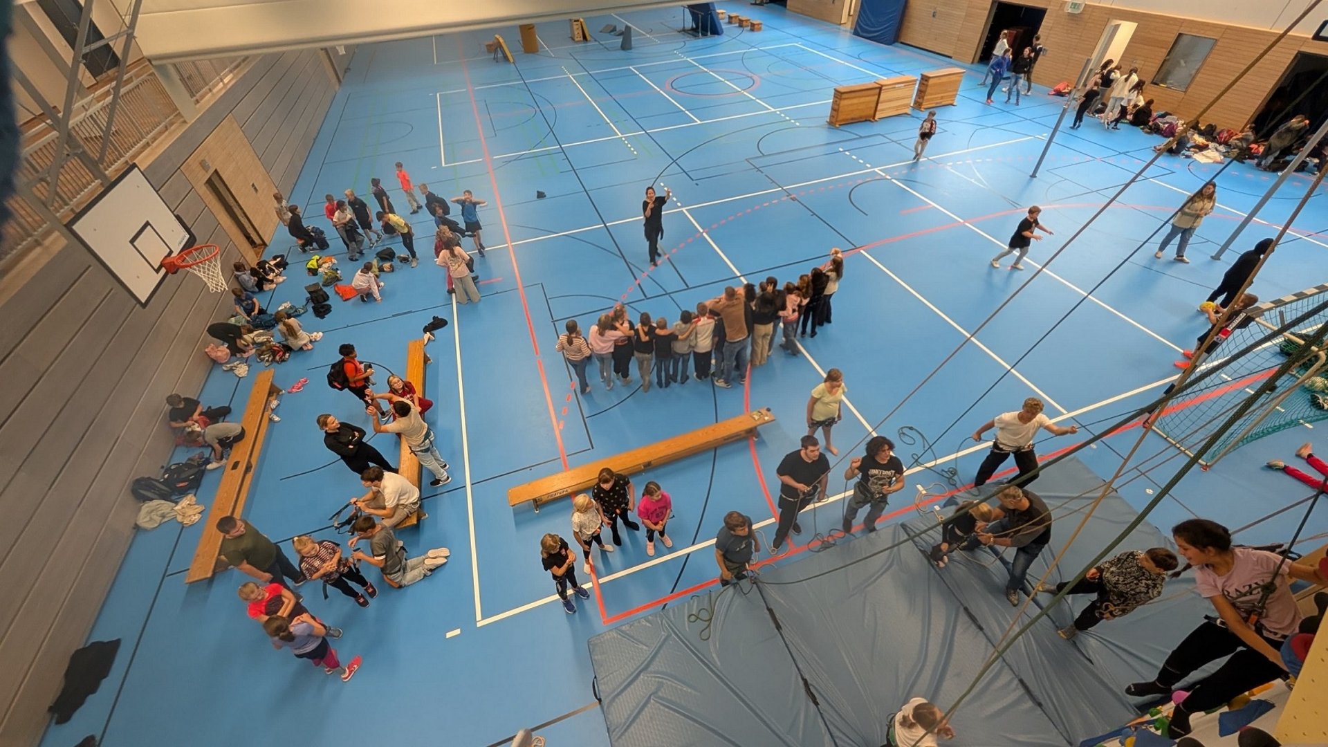 Es musste ein Mattenberg erklommen, ein Spinnennetz durchdrungen und blind ein Hindernisparcours durchlaufen werden. Auch die neue Kletterwand wurde von Schülerinnen und Schülern und Lehrkräften auf Herz und Nieren geprüft. Alle Aufgaben konnten nur im Team gelöst werden. Am Ende waren sich alle einig – nur im Team ist man stark!