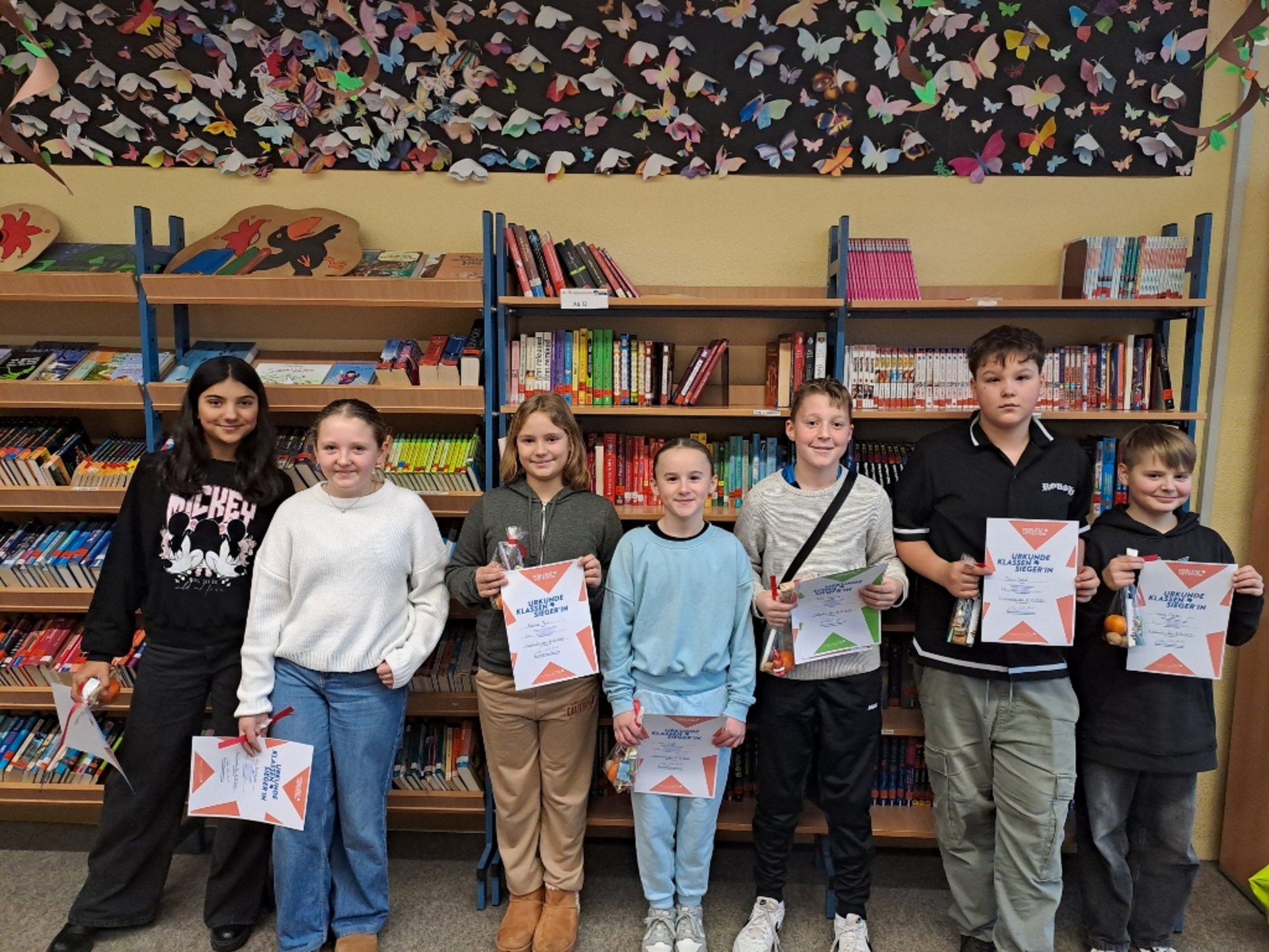 Der Vorlesewettbewerb an unserer Schule hat erneut gezeigt, wie inspirierend Lesen sein kann. Mit viel Engagement und einer Leidenschaft fürs Lesen trugen alle Klassensieger*innen Passagen aus ihren Lieblingsbüchern vor. Die Jury bewertete dabei nicht nur die Lesetechnik, sondern auch die Interpretation und die Auswahl der Textstelle. Nils konnte in allen Kategorien überzeugen und wird nun unsere Schule im Februar 2026 auf regionaler Ebene beim Kreisentscheid in Kusel vertreten. Wir drücken ihm die Daumen!!